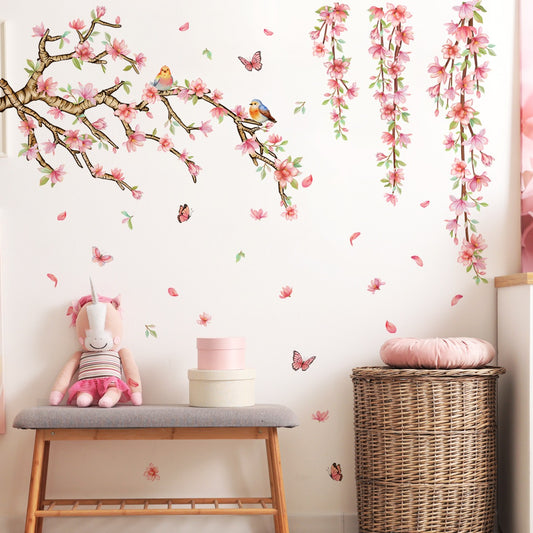 COVPAW Wall Stickers Peach Blossom Peach Tree Vine Living Room Bed Room Children's Room Bedroom Deco Mural Wall Paintings