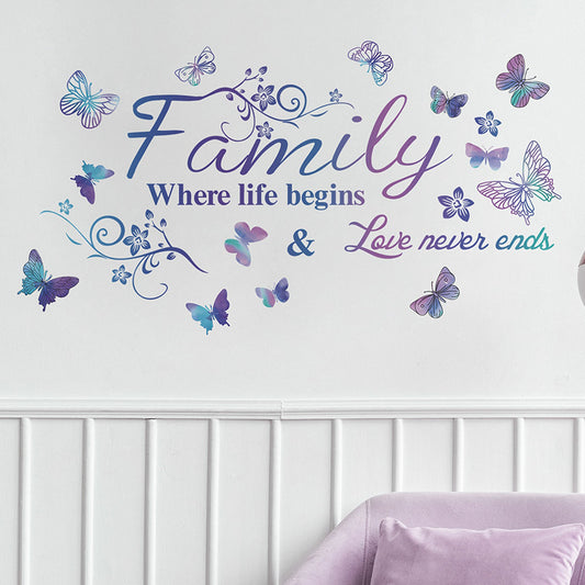 COVPAW Wall Stickers Words Family Flower Vine Butterfly Mural Wall Painting Nature Home Office Decor Living Room Bedroom Children's Room Decoration Yoga, Self Adhesive, Removable and Waterproof