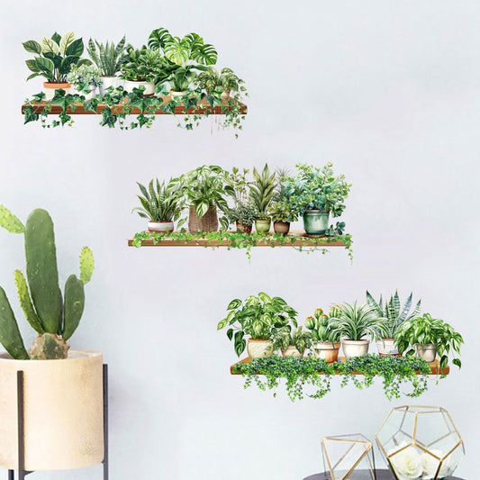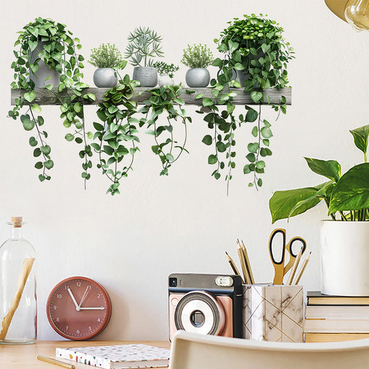 COVPAW Wall Stickers Green Flower Potted plant Greenery Nature Home Office Wall Decor Living Room Bedroom Children's Room Decoration Self Adhesive Mural Wall Painting