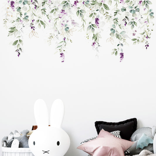 COVPAW Wall Stickers Green Purple Flower Vine Nature Home Office Wall Decor Living Room Bedroom Children's Room Decoration Self Adhesive Mural Wall Painting