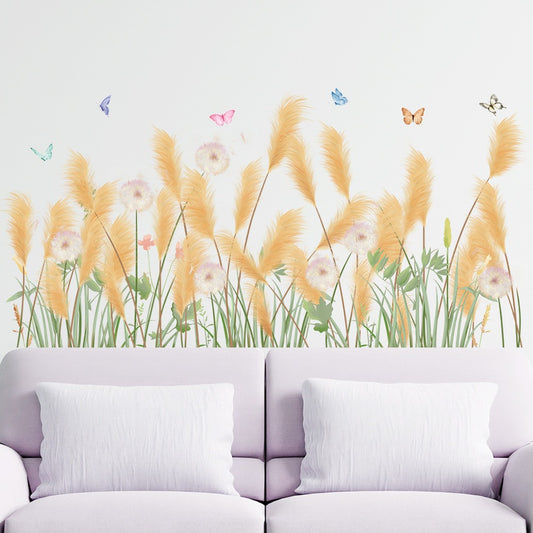 COVPAW Wall Stickers Reed Butterflies Nature Home Office Wall Decor Living Room Bedroom Children's Room Decoration Self Adhesive Mural Wall Painting