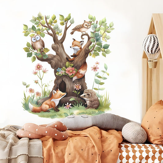 COVPAW Wall Stickers Big tree Treehouse Tree holes Fox Owl Hedgehog Animals Children's Gift Home Decor Living Room Bedroom Children's Room Decoration Mural Wall Picture Self Adhesive, Removable and Waterproof